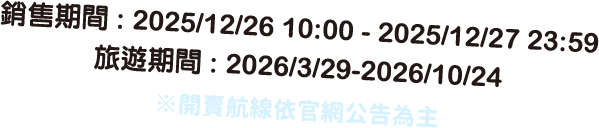 - 優惠價機位開放銷售之日期及機位數有限,售完為止。
