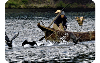 傳承千年的傳統漁法。夜間漁師點燃篝火引導鸕鶿捕魚,如歷史畫卷。現有白天觀覽,可近距離欣賞這項古老技藝。