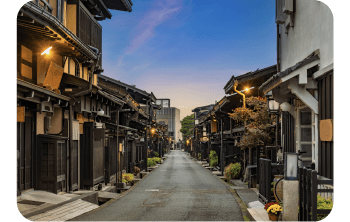 木造屋舍與街道展現濃厚歷史。兩旁聚集清酒、工藝店與小吃,邊走邊逛即可感受飛驒匠人的精湛精神。