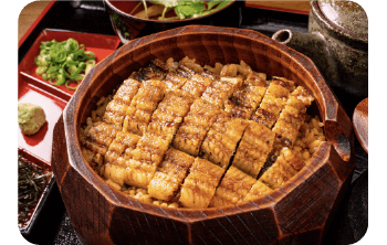 以備長炭烤至外酥內嫩。特色在於三段式吃法:原味、加藥味、入高湯,一餐就能體驗多重層次,滋味絕佳。