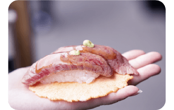 孕育於優質水源,以細膩油花與柔軟肉質著稱。油脂甜美、入口即化。行經高山老街,必嚐名物飛驒牛壽司。