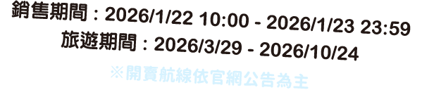 - 優惠價機位開放銷售之日期及機位數有限,售完為止。