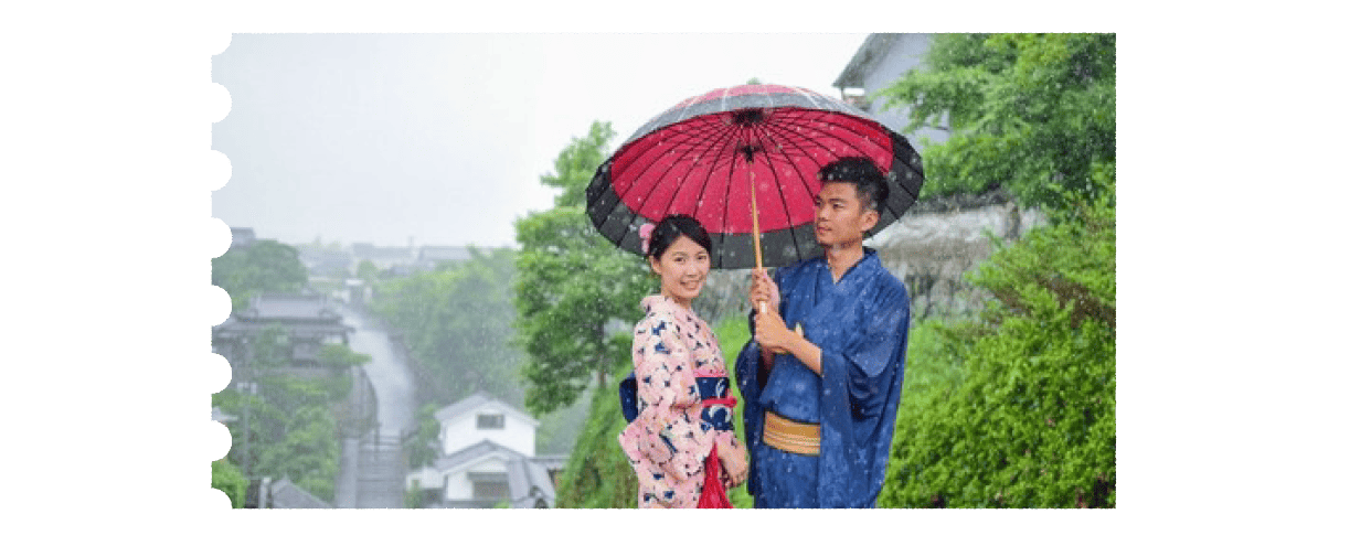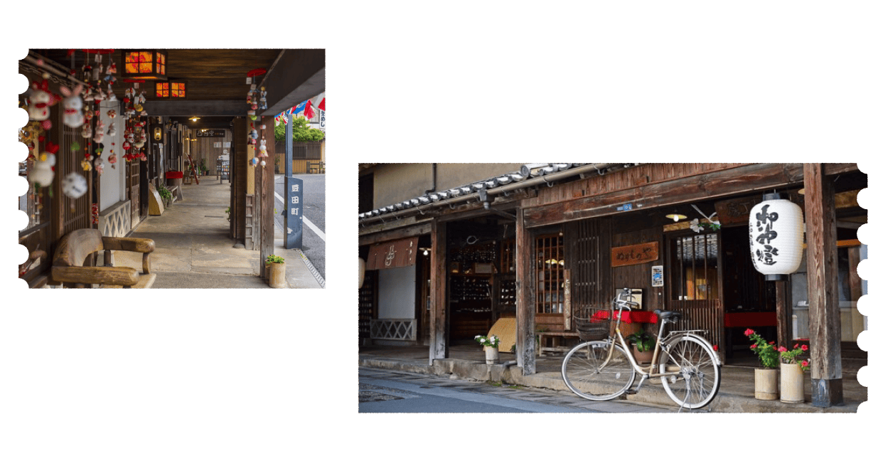 杵築和川越一樣,也是具有相同的背景,早期也因為商業進而繁榮,隨著時代遷移,繁華退去,留下的是當時的老房與大小店舖,這些店鋪至今仍保留了承襲當時傳統味道的技藝與故事,替充滿著悠久歷史的杵築保留了更多的溫度,也因為如此,杵築更是許多日本歷史劇、電視劇、廣告等電視節目的外景拍攝聖地。更被日本國家公認為「最適合穿著和服打扮走在其中的歷史街道」。身著和服漫步杵築的街頭感受很特別,街道因為懷舊復古加上一點細雨的灰色調,彷彿時空倒轉了很多很多。