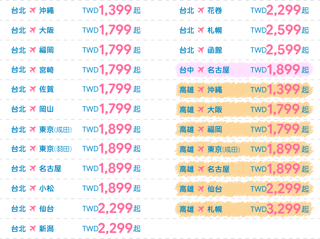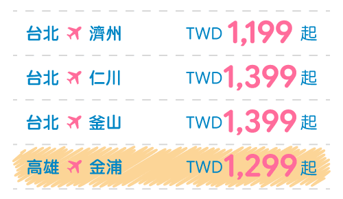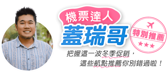 - 僅適用於新購票時使用此優惠票價,不適用於更改航班。