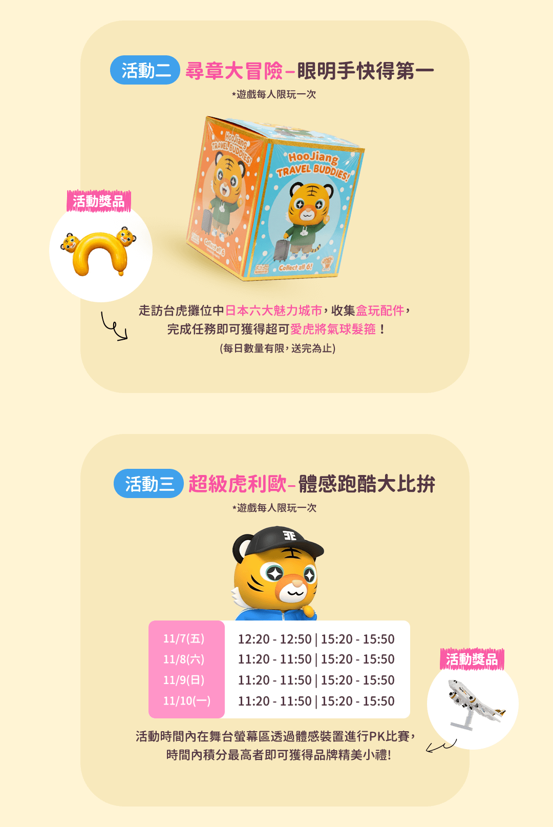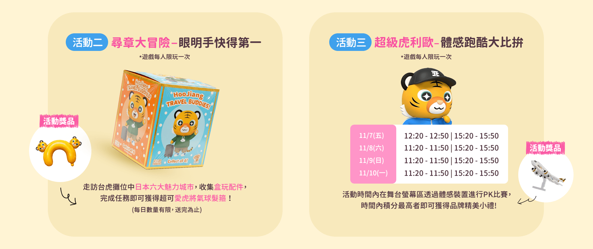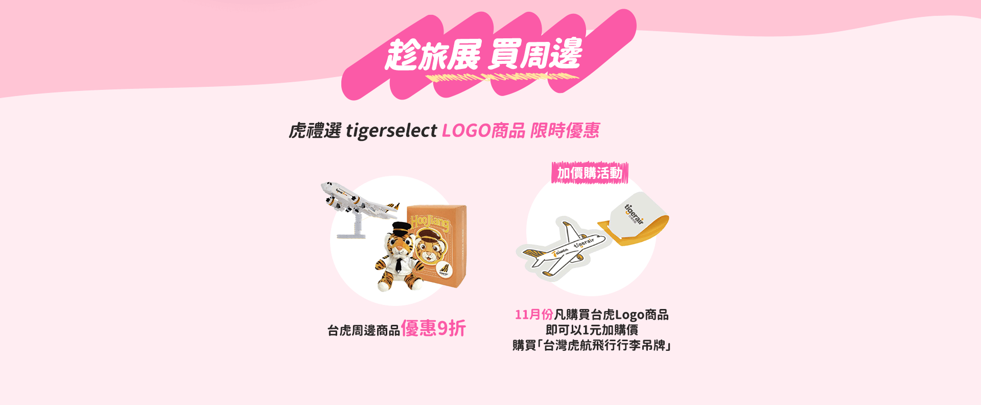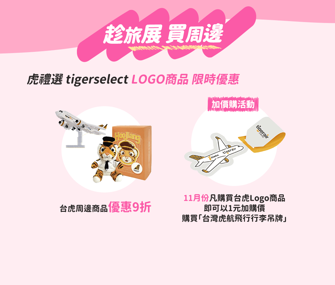 凡在台灣虎航線上旅展期間 (2025/11/5-11/10) 於台虎官網購票,並單筆訂單金額超過(含) 10,000 元新台幣,即可在 ITF