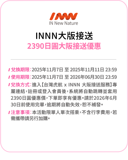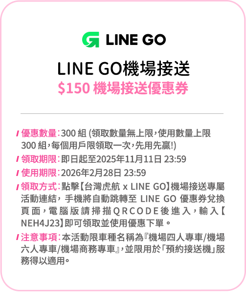 - 請注意,此優惠價格為單程未稅。
