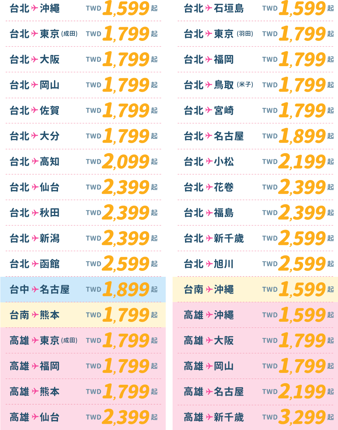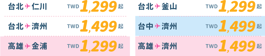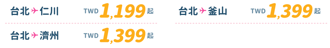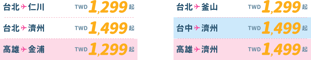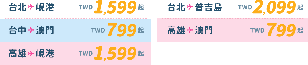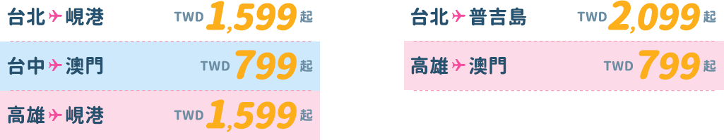 - 僅適用於新購票時使用此優惠票價,不適用於更改航班。