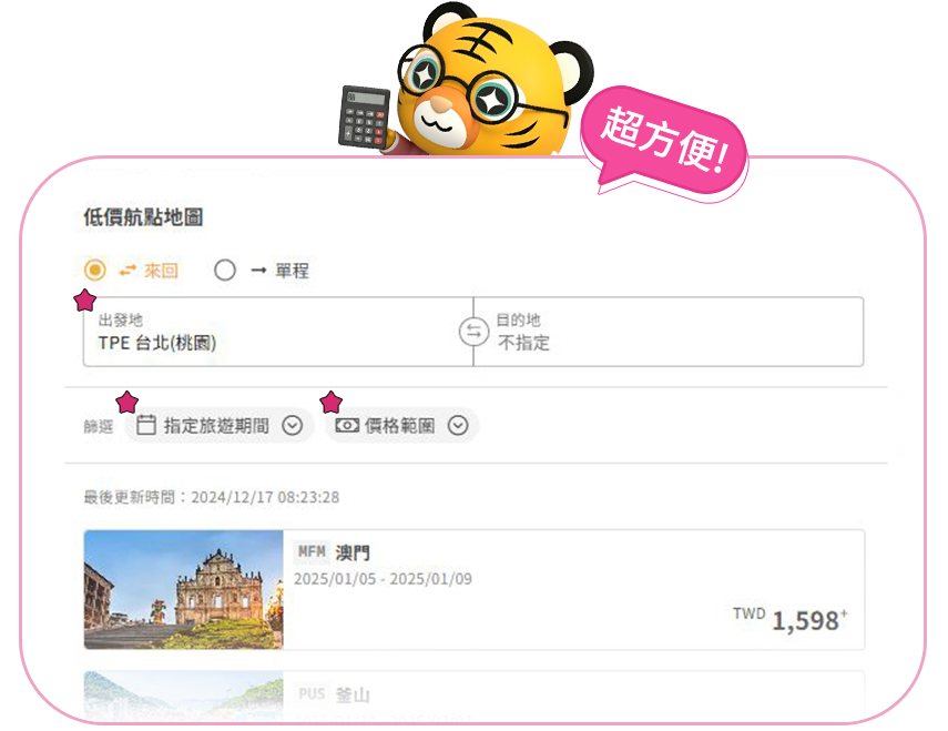 - 僅適用於新購票時使用此優惠票價,不適用於更改航班。